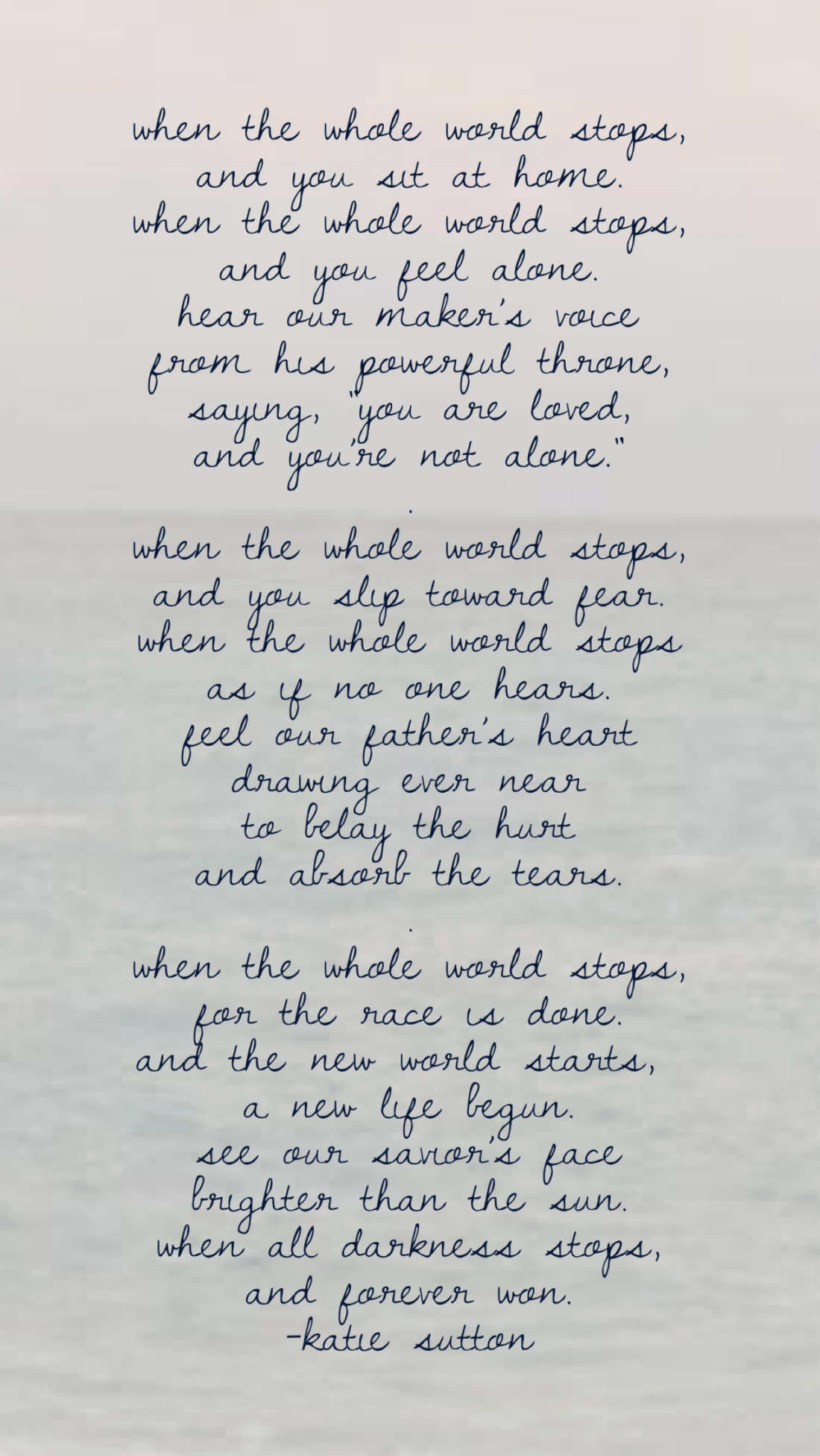 When the Whole World Stops Katie Sutton Children’s Choir, Family Singing April 5, 2020 1 Minute Share this: Share on X (Opens in new window) X Share on Facebook (Opens in new window) Facebook Like Loading... Related Published by Katie Sutton View all posts by Katie Sutton Published April 5, 2020